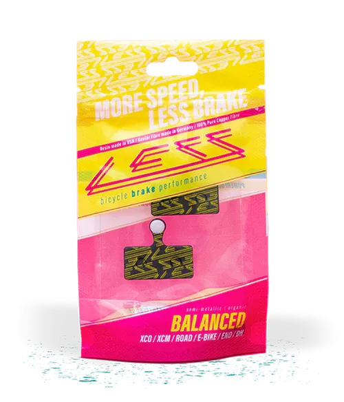 LESS BRAKES Balanced -jarrupalat on suunniteltu pyöräilijöille, jotka haluavat luotettavan jarrutustehon, hyvän hallinnan ja pitkän käyttöiän ilman äärimmäistä kulutusta tai aggressiivista tuntumaa. Balanced-seos tarjoaa erinomaisen kompromissin tehon, hiljaisuuden ja kulutuskestävyyden välillä.